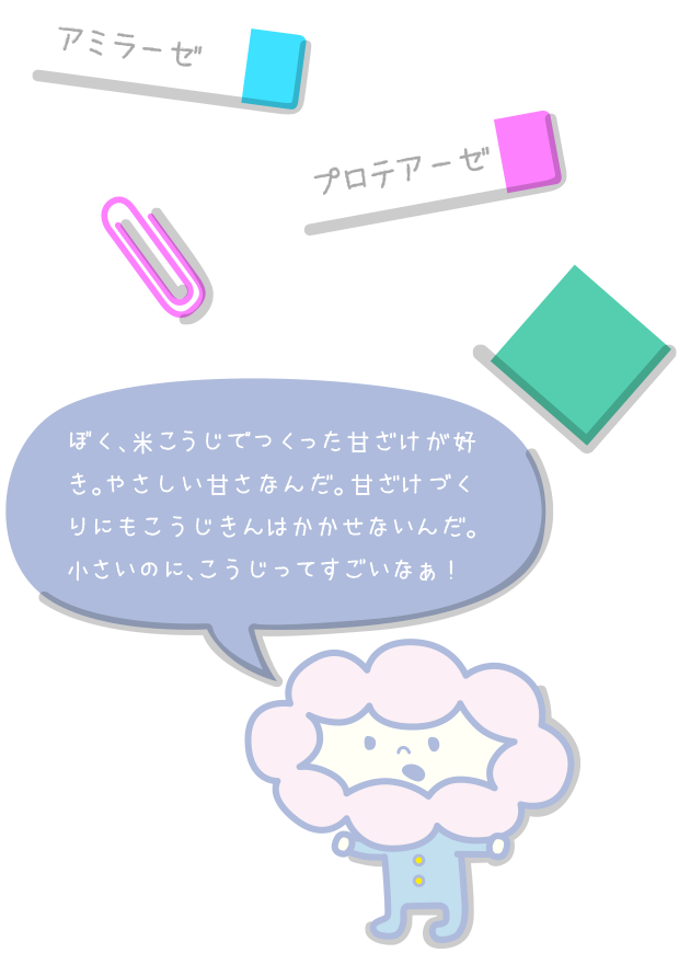 オリゼ菌は目には見えない小さなものだけど、大きな栄養をつくっているんだね。日本も小さな国だけど、この国の発酵食には大きなしあわせをつくるチカラがあるんだ。